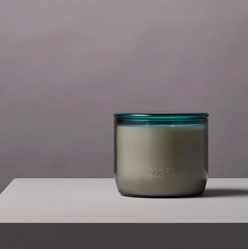 Locally hand poured in a handblown smoky grey glass jar with a fitting teal green lid, Waxed Perfume XL uses 100% Natural Wax and is double wicked with unbleached cotton.