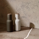 The Norm Bottle Grinder is designed to intrigue your senses and leave you curious - built for high performance with a powerful expression and a shape that shares DNA with the silhouette of a water bottle. It leaves a powerful first impression due to sheer size and intensity. An upside down design insures that neither salt nor pepper sprinkles out when not in use - only when you are grinding. This way those pesky stray bits of pepper or salt are not left on the table. Plastic, ceramic grinder & wood.