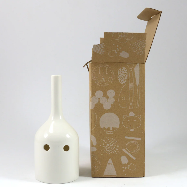 Ghost Light Junior is a distant cousin to our original Ghost Light, haunting your home while also brightening up dark corners. The little Ghost is hand cast and glazed in translucent porcelain and comes in its own printed cardboard box. Ghost Light Jr. also doubles as an incense block holder, as seen on Instagram.