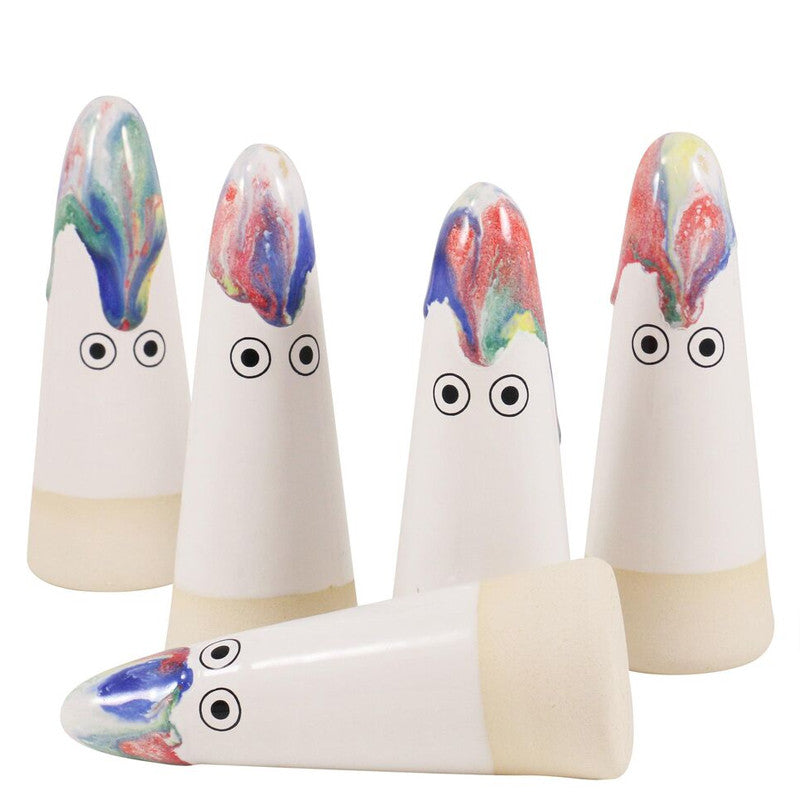 Based on the ideas of the Japanese Shinto religion, who believe everything in nature has a soul; mountains, rocks, plants, pebbles, these ceramic and porcelain ghosts each have a unique look and personality. A beautiful small edition to any room.