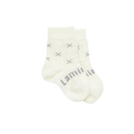 Fox - Natural with grey crosses crew length merino socks (*0-3m grey is a bit darker than in photo's) An essential item for every new baby. Merino wool is super soft and cosy on a baby’s delicate skin. The Newborn Naturals range comes in our three smallest sizes.