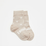 NEWBORN NATURAL - Ted - Oatmeal with natural crosses crew length merino socks An essential item for every new baby.