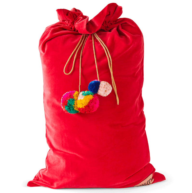 Stash your Christmas goodies in our 100% cotton velvet signature Santa sacks! 100% cotton velvet with multicoloured pom pom drawstring.