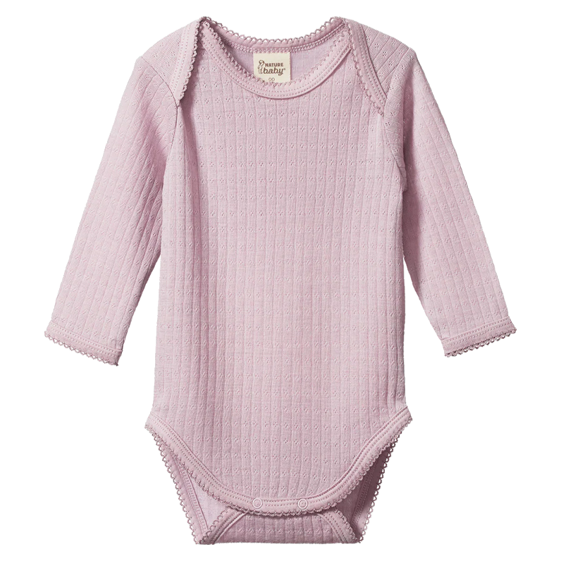 Nature Baby Merino Pointelle Long Sleeve Bodysuit Lilac