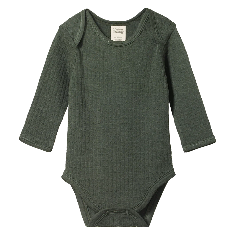 Nature Baby Merino Pointelle Long Sleeve Bodysuit Thyme