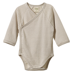 Nature Baby Long Sleeve Kimono Bodysuit Mushroom Pinstripe