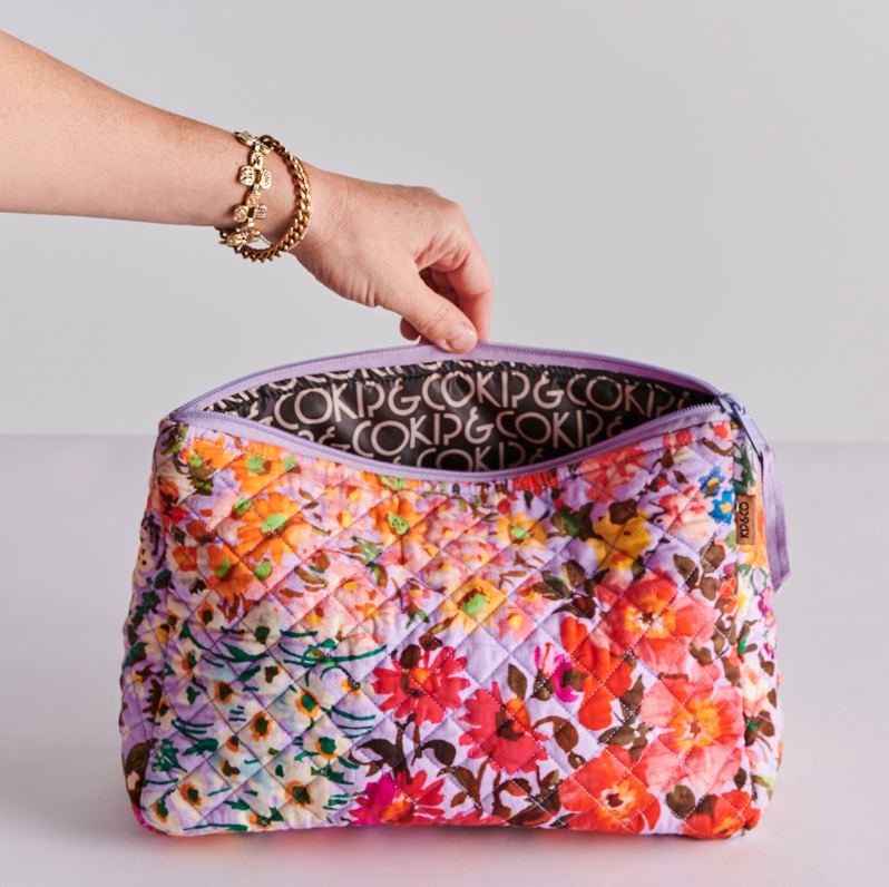 Kip & Co Forever Floral Lilac Quilted Cotton Toiletry Purse