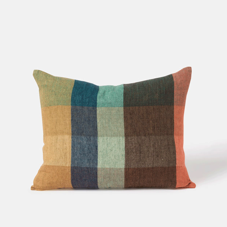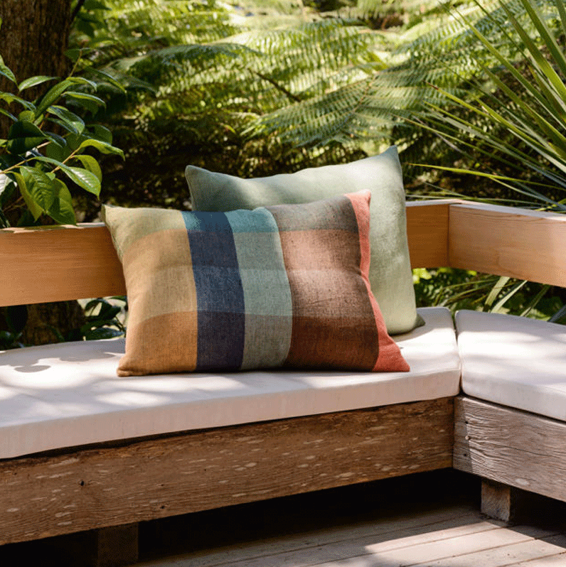 The Cabin Linen Cushion Cover takes inspiration from textiles found in quintessential New Zealand baches and cabins. The nostalgic plaid combines denim blues with warm chestnut.
