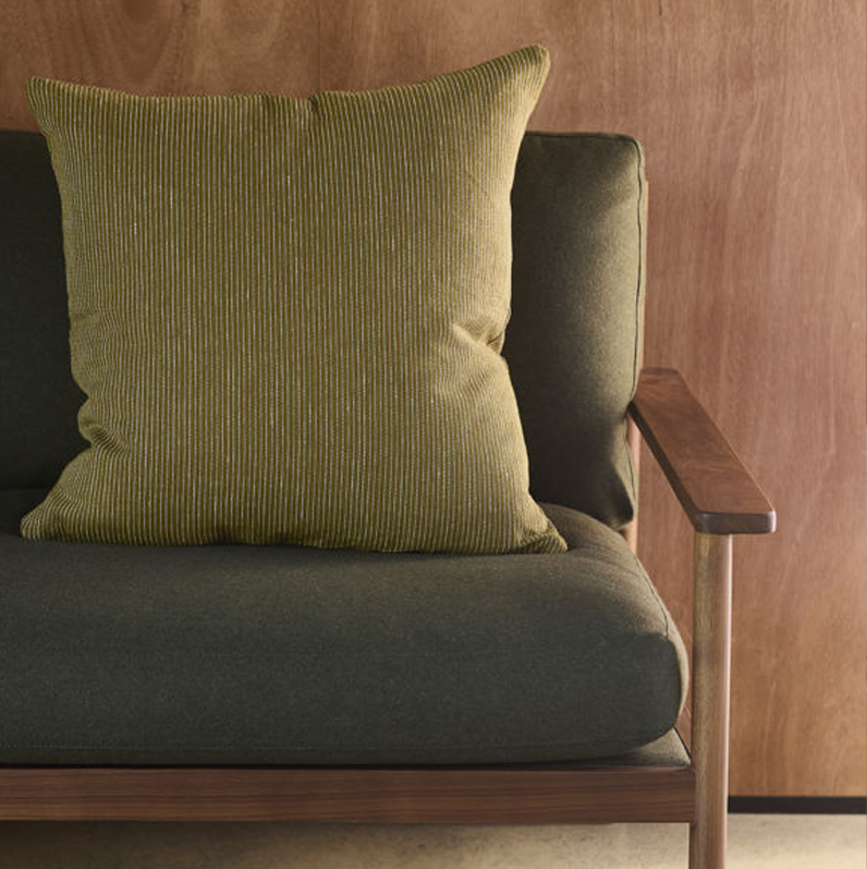A classic addition to your space, this elegant cushion cover features a deep ivy hue with fine stripe detailing. Made with 100% linen in a soft, textured finish.