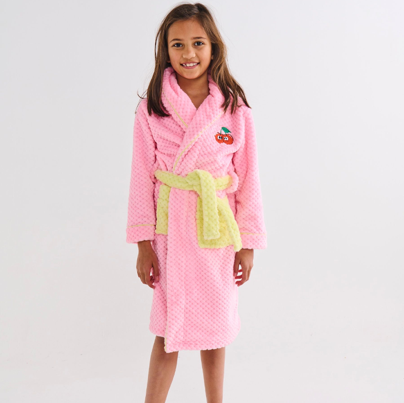Their smash hit Cosy Robe is now available for kids too! Made from 100% recycled PET in an ultra soft and plush quilted fabric, the Morning Delight Kids Cosy Robe is a strawberry milkshake pink with soft yellow patch pockets, waist tie and piping details with an embroidered pair of cherries on the front chest. Super cute! The ultimate comfort piece for at home lounging and all day PJ parties, everyone in the fam can be toasty warm in matching styles all winter long!