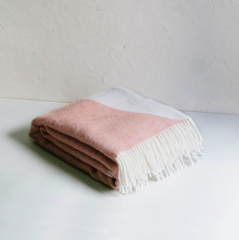 STREAM pink is woven from sustainable, mulesing free New Zealand wool.