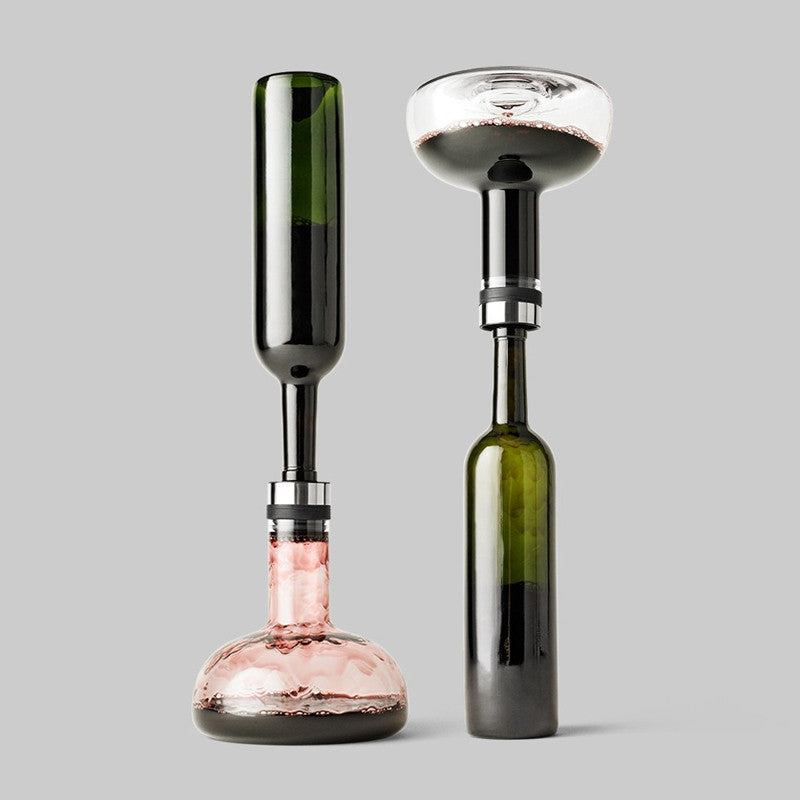 The elegant Audo Winebreather Carafe adds 10x more oxygen to your wine in under 2 minutes. Simply press the decanter onto the top of an opened bottle of wine and flip it over so the wine pours into the decanter. You can serve the wine directly from the beautifully designed carafe, or flip it back over once it's done to pour the aerated wine back to serve directly from the original bottle. The Menu Winebreather Carafe is the most effective aerator on the market and was the undisputed winner of a Eurofins aerating test.