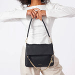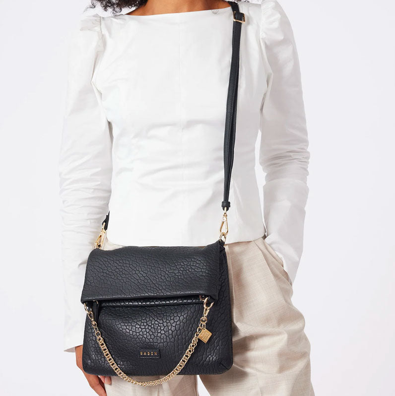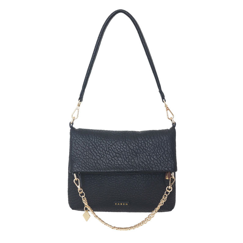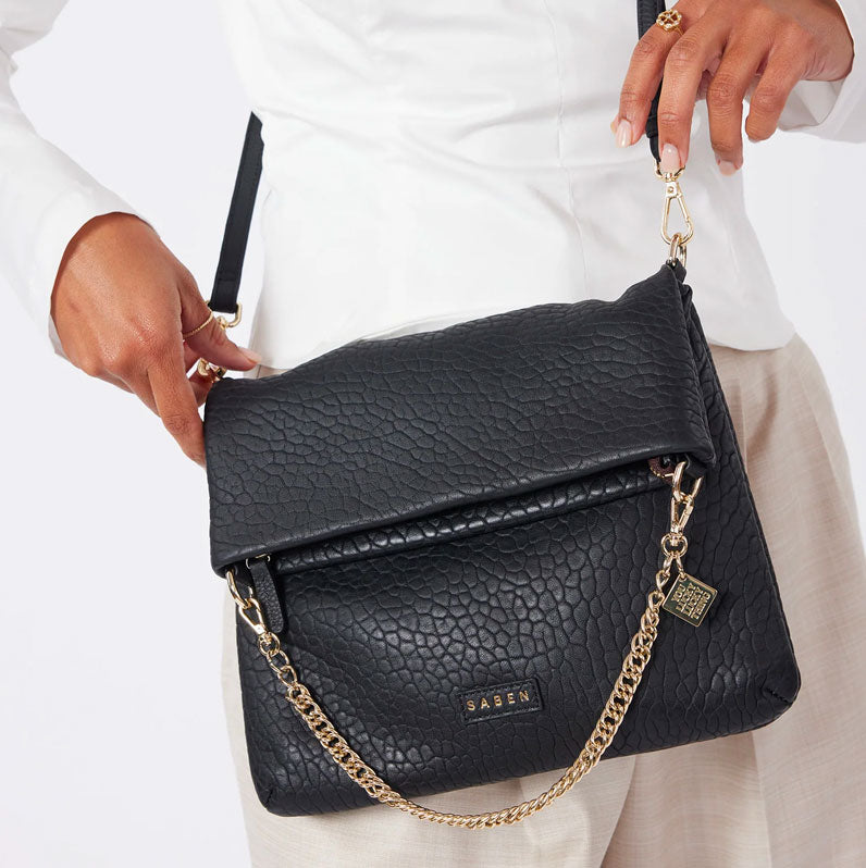 Brand new to the Saben collection, Daria is your go-to bag designed to elevate your everyday look. Made to suit your on-the-go lifestyle, Daria’s fold over flap allows you to transform her into a larger bucket style tote when you need that bit of extra room throughout the day. Daria features a shoulder strap, crossbody strap and detachable chain detail.