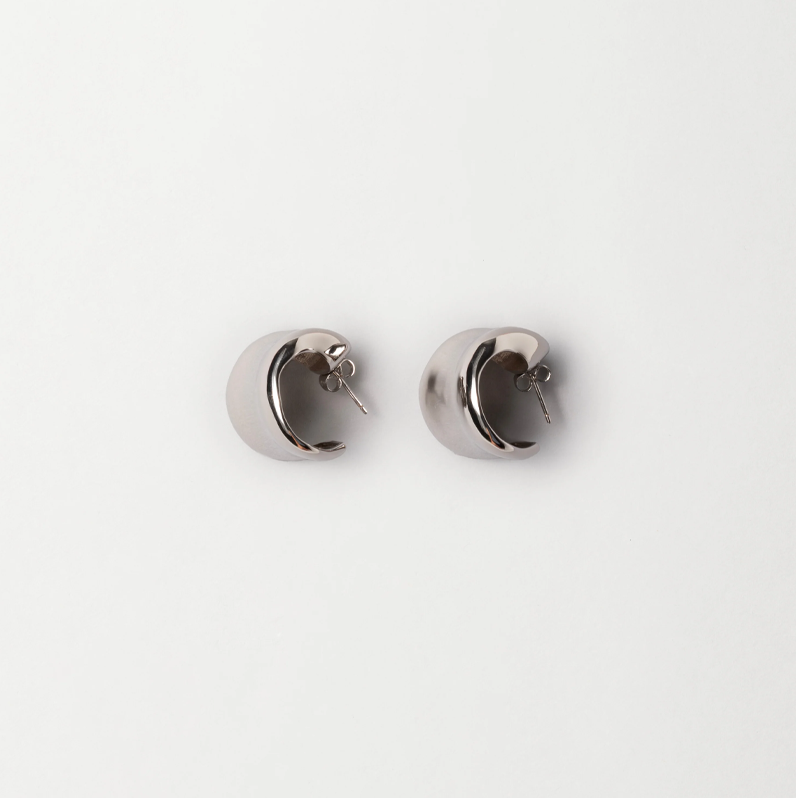 Exaggerated hoops play with perception and reflection. Studded to the ear, these artistic earrings elevate with ease.