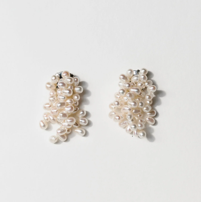 A petite take on our Mermaid Earrings, the Mini Mermaids balance statement and subtlety. Clusters of irregular sea pearls are grouped en masse for sculptural dynamism.