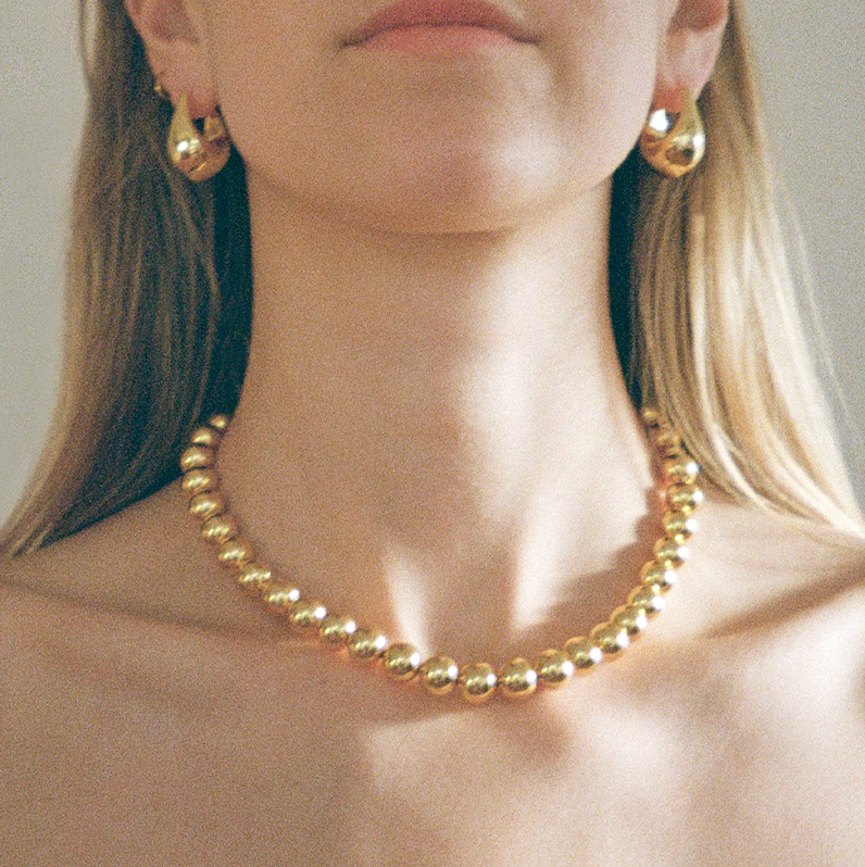 The Paloma Necklace from New Zealand brand, Jasmin Sparrow is a modern classic. Crafted from metal spheres that band together and adorn the neck in a timeless manner, elevate your look in an instant with this pearl like design.