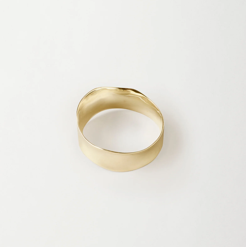 An exaggerated line with a water-like quality absorbs the wrist. A wide surface area in a high gloss finish gives a sophisticated drama to a gestural hand.
