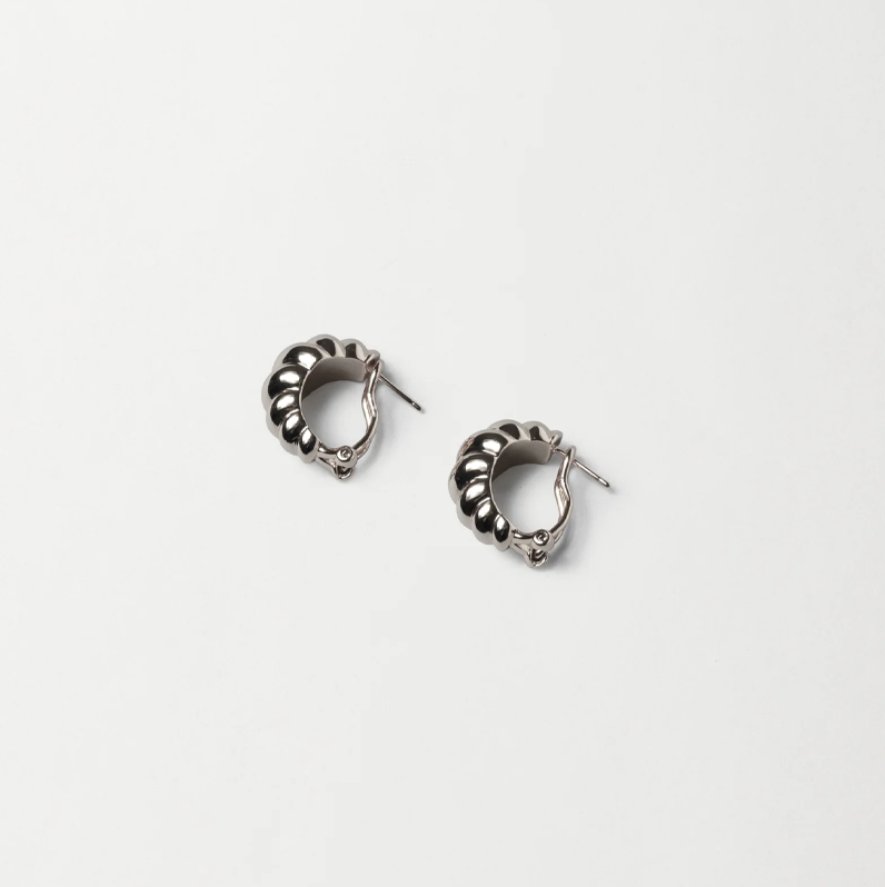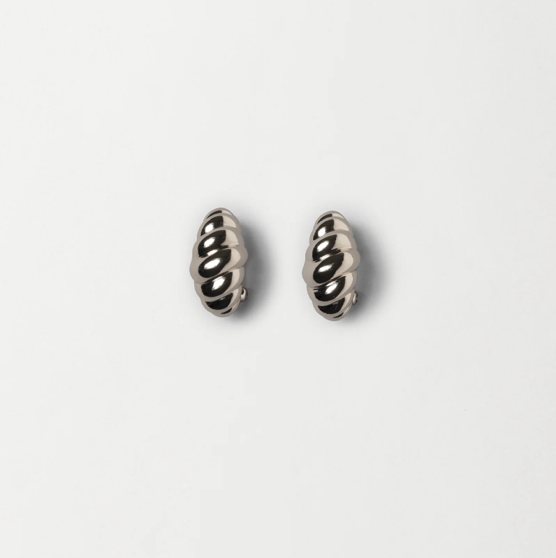 A homage to the unravelling of tightly pressed petals, caught in blooming action, the Tulip Earrings catch the sunlight on their continuous and bulbous shapes. Crafted in sterling silver and plated in rhodium.