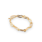 A timeless chain bracelet made with uneven oval and round links. Handcrafted in 18 carat gold plated silver with a loop and bar clasp.