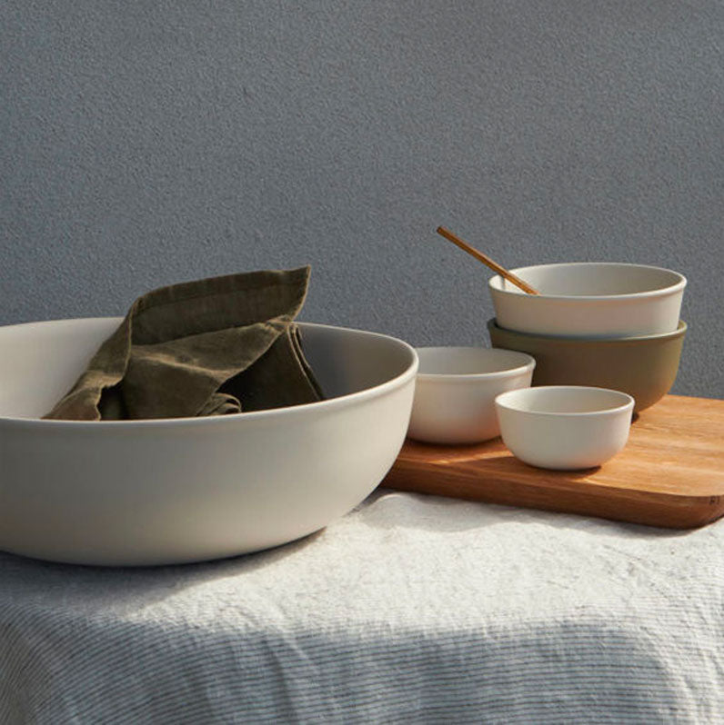 The Halo range also includes a series of salad and serving bowls across a range of sizes and depths. Mix and match across the tonal colour range.