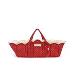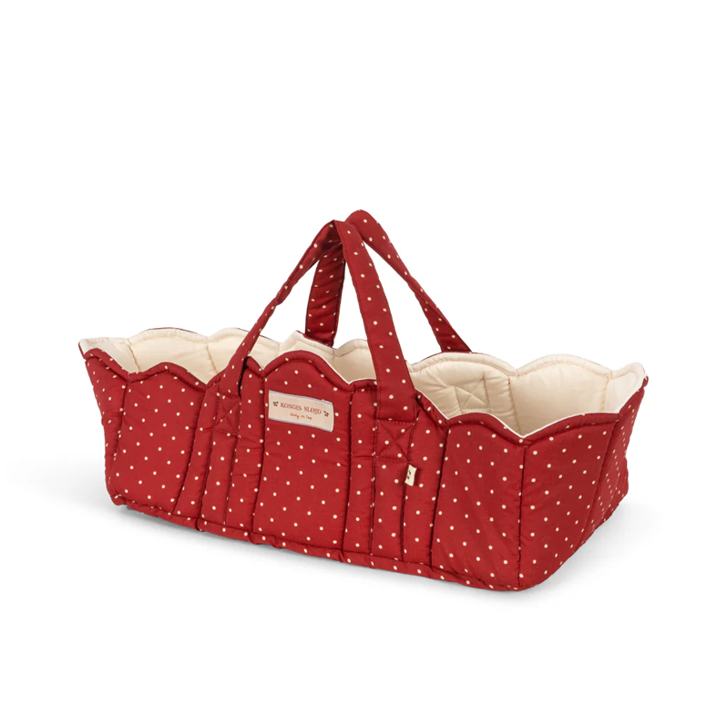 Padded doll lift made in 100 percent organic cotton. Designed with practical carry straps, soft piping and scallop shaped endings.