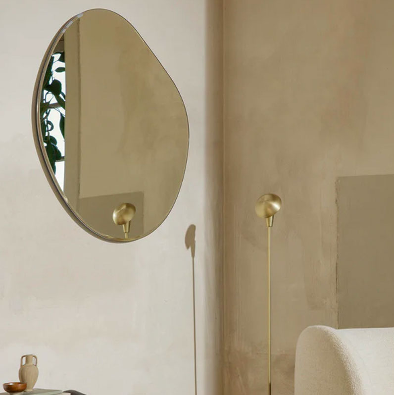 The Pond Series marries form and beauty by using organic shapes, inviting open and fluid forms into your home and turning this functional mirror into a decorative wall piece. The curved edges are held by a slim, metal frame, and can be hung in any direction so that you can find the perfect fit for your space.