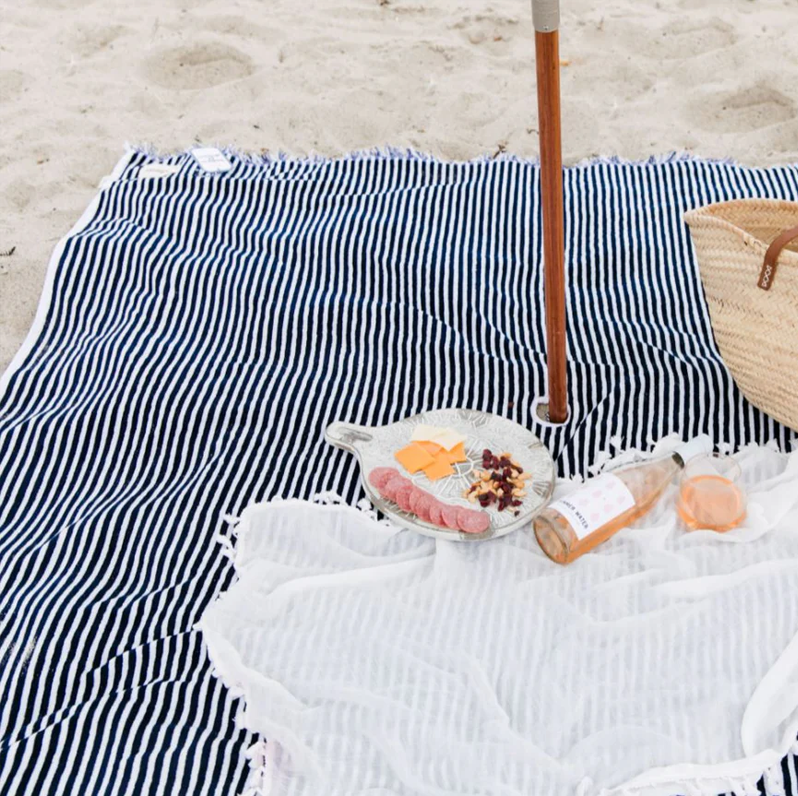 Business & Pleasure Beach Blanket - Laurens Navy Stripe