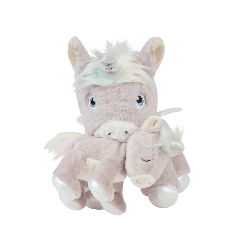 With super soft lilac fur, twinkling horn, and just the right amount of sparkle, this little unicorn is dressed in pure magic. Baby Glitter has a magnetic mouth for holding its adorable dummy and a magnetised neck for snuggles with the Dinkum Unicorn. Whether it's for cuddles, giggles, or magical mischief, this playful sidekick is always up for an adventure full of wonder!