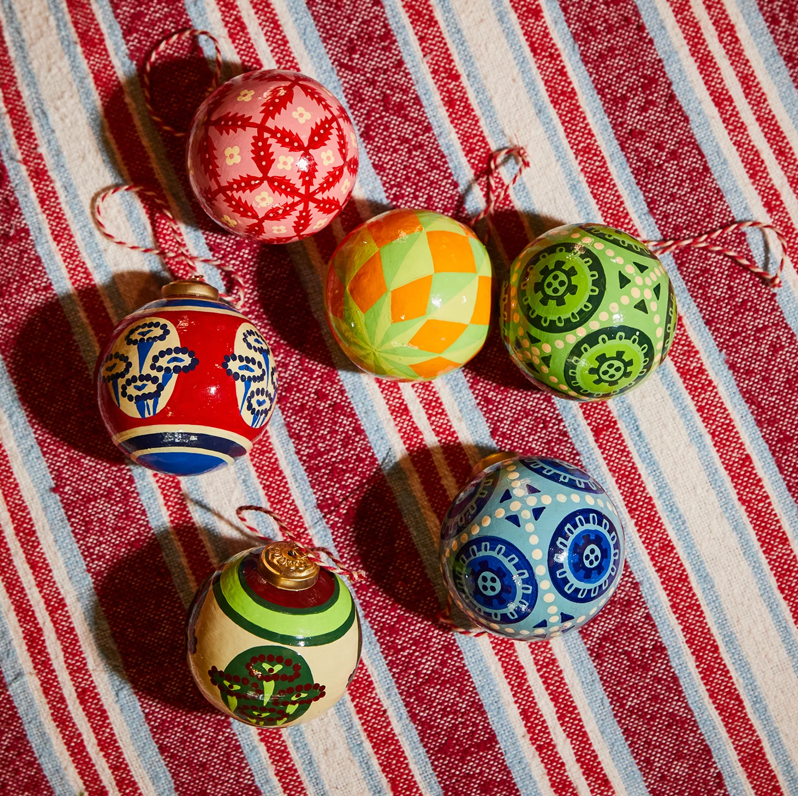 Shaped by hand from papier-mâché, these baubles add sculptural texture, nostalgic motifs and vibrant colour to your tree. Lightweight yet sturdy, they hang beautifully and will brighten your celebrations for years to come.