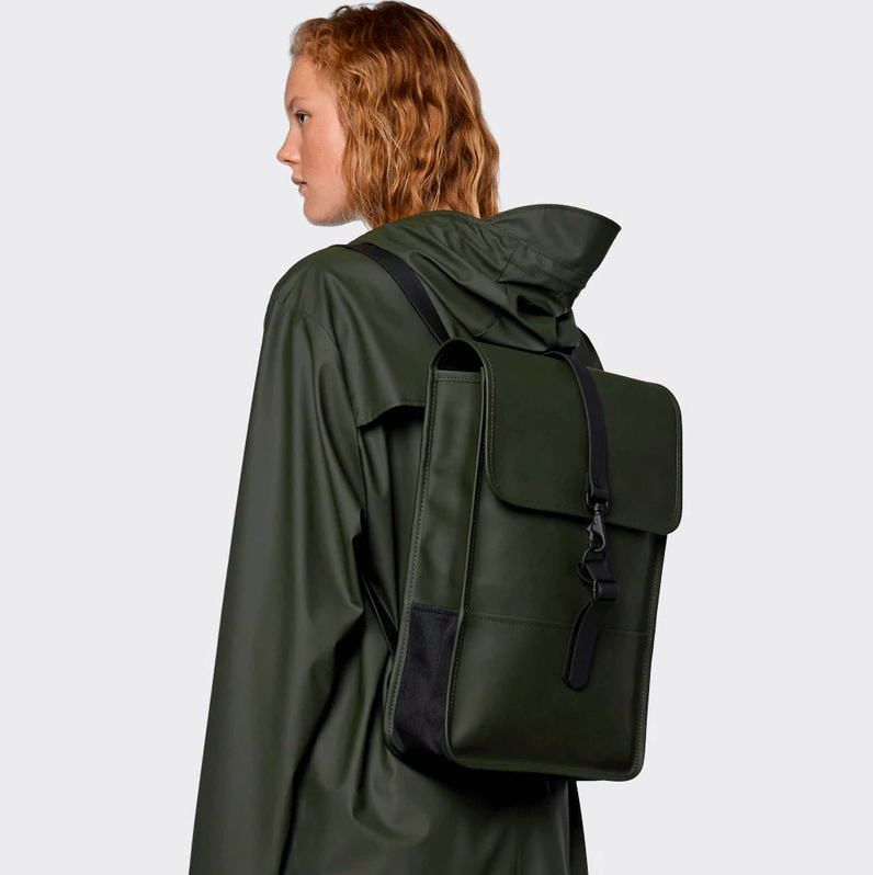 Backpack Mini is cut in Rains’ signature waterproof PU fabric, engineered for carrying strength, durability, and a smooth feel.