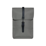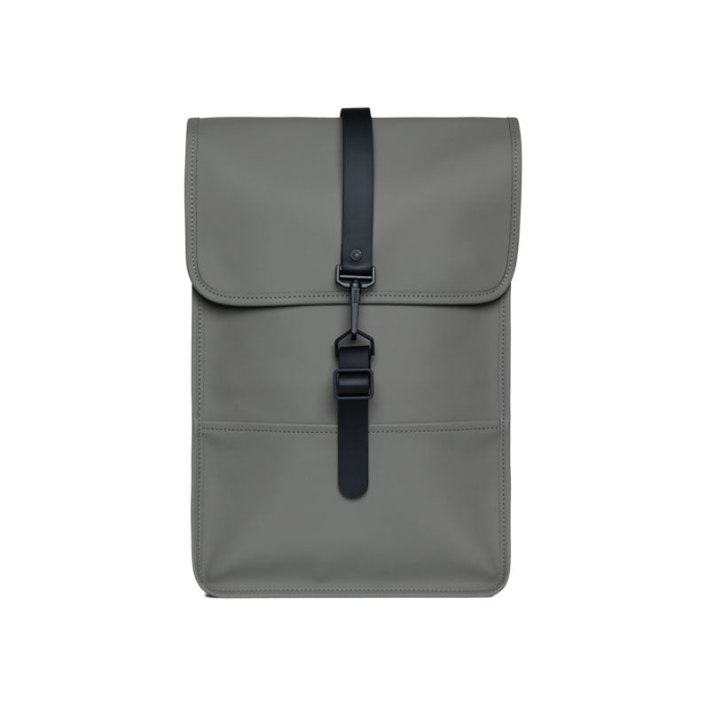 Backpack Mini is a downscaled version of Backpack, a true Rains classic. The silhouette is characterized by its prominent flap and central strap with carabiner closure. This clean and ever contemporary waterproof rucksack features an internal laptop pocket, a main compartment, and a concealed external phone pocket on the back panel.