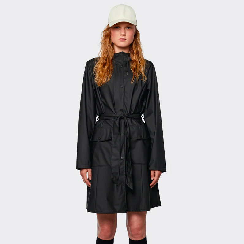 This waterproof jacket is cut from Rains’ signature PU fabric and features ultrasonically welded seams. The finish is lightweight with a soft feel and elegant drape.