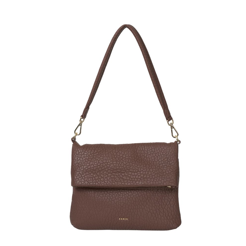 Brand new to the Saben collection, Daria is your go-to bag designed to elevate your everyday look. Made to suit your on-the-go lifestyle, Daria’s fold over flap allows you to transform her into a larger bucket style tote when you need that bit of extra room throughout the day. Daria features a shoulder strap, crossbody strap and detachable chain detail.