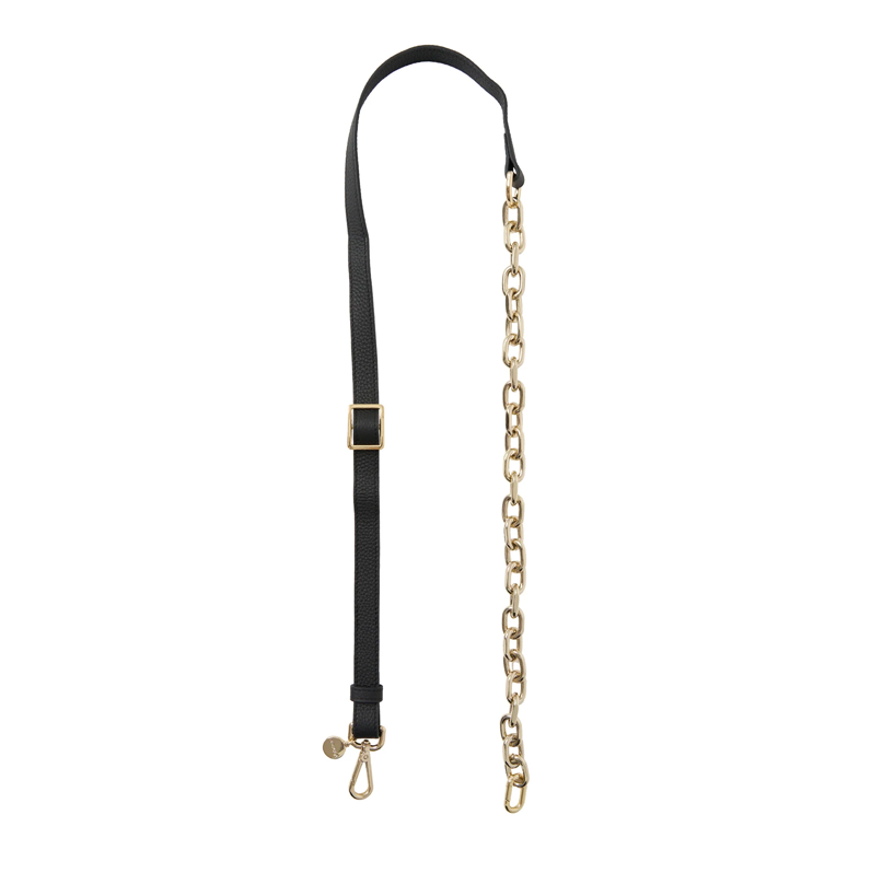The black leather + gold link strap includes a removable link which means it can be attached to any D-link . Drape the chain at the front, or as decoration on the side, and use it to make a bag crossbody.