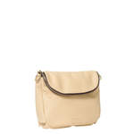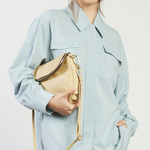Details: Zipped flap closure with magnetic fastening, the fold hides a deep pocket inside; exterior back drop pocket with magnetic closure; detachable and adjustable long leather strap to be worn over the shoulder or across the body; gold-plated hardware; interior secure zip pocket; two cellphone drop pockets.