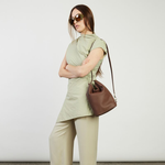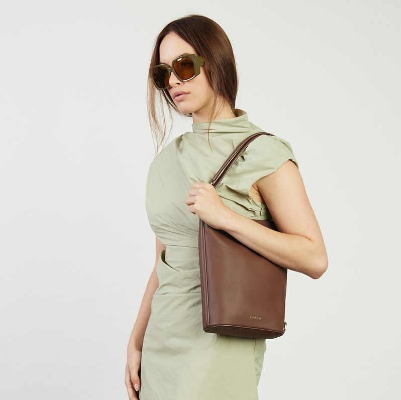 A sleek mid-sized bucket style bag; the smaller sister to our generous bucket tote June. Jojo delivers the same sophisticated functionality in a more compact form. Perfect for those who prefer to carry with intention rather than excess, while maintaining the effortless style transition from shoulder to crossbody wear. Simply unclip the signature SABEN hardware to transform it into a chic crossbody – versatility refined.