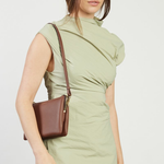 Details: Detachable and adjustable long leather strap to be worn over the shoulder or across the body; six drop card slots; gold plated hardware; interior secure zip pocket; outer zip fastening.