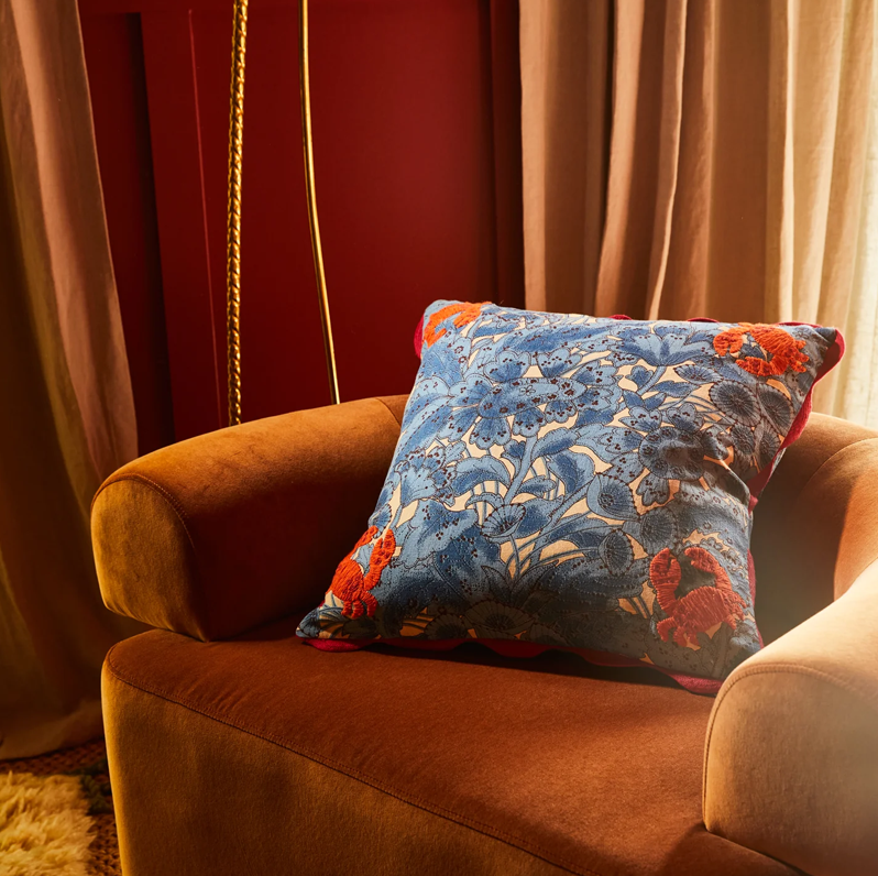 Sage & Clare Lucia Embroidered Cushion - Cerulean