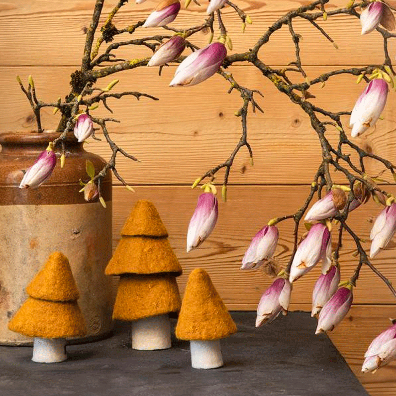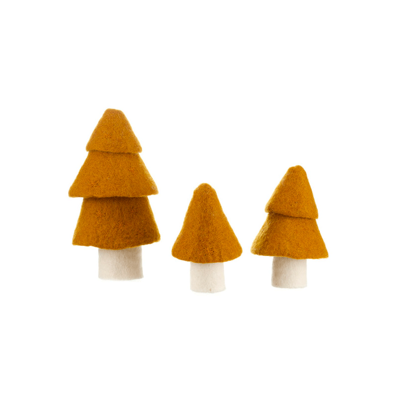 Muskhane Felt Christmas Tree Set Of 3- Gold