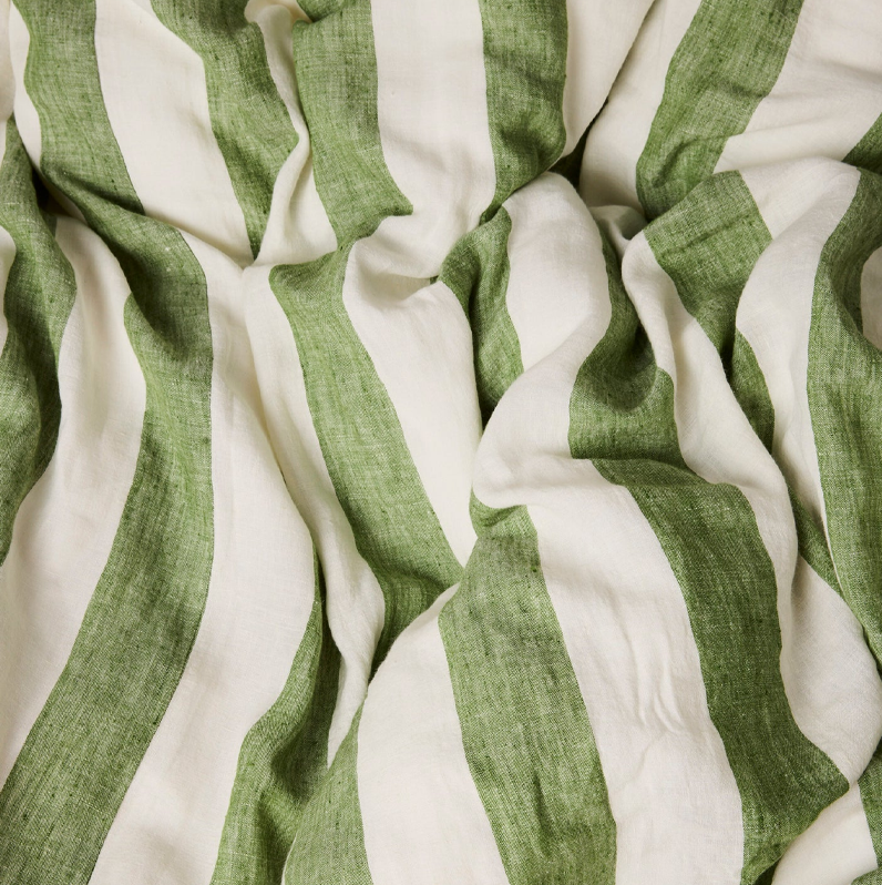 Add a splash of sun-soaked style to your bed stack with our Moss Stripe Linen European Pillowcases. Made from 100% French flax linen, they’re generously sized, delightfully textured, and perfect for propping, lounging or layering. Featuring lush moss green and creamy white stripes, these pillowcases bring pure holiday-at-home bliss.