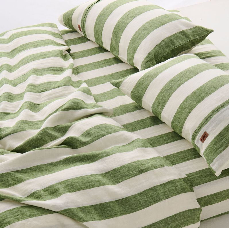 Kip & Co Moss Stripe Linen Pillowcases 2P Std Set