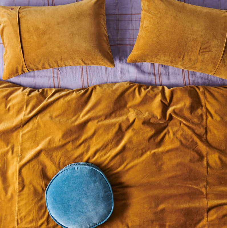 Pair with matching Pecan Velvet Quilt Cover and style with our Santa Monica linen and Adriatic Blue Velvet Pea Cushion.