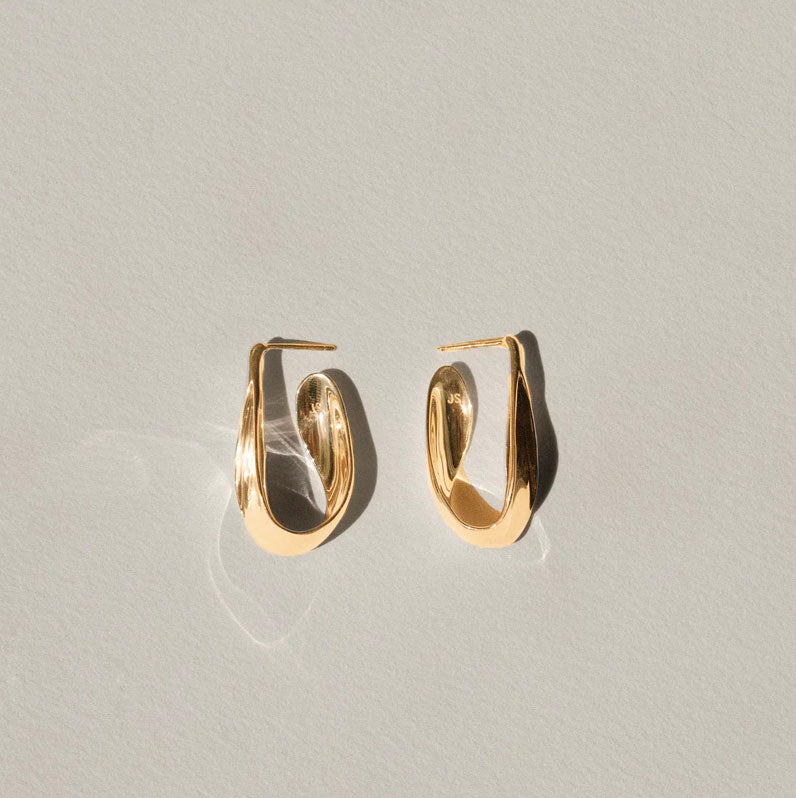 Inspired by cascading flora, the Frondis Hoops are reminiscent of an inverse Calla Lily. Studded to the ear, these drop earrings fall away before curving back to the lobe.