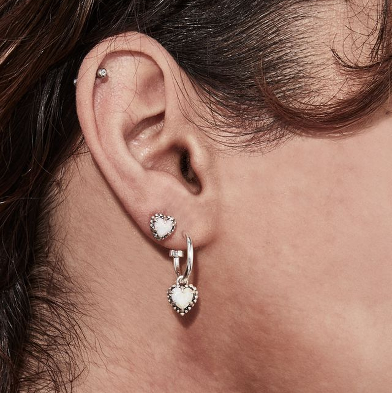Showcasing a faceted heart shaped Bello Opal. Minimalist yet striking, these studs balance refinedelegance with a whisper of subversive charm.