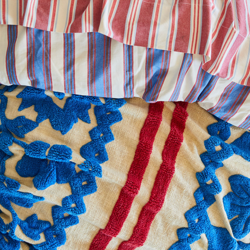 Designed to lay across the foot of your bed or couch, add visual interest to your space with our artisanal blankets made with love.