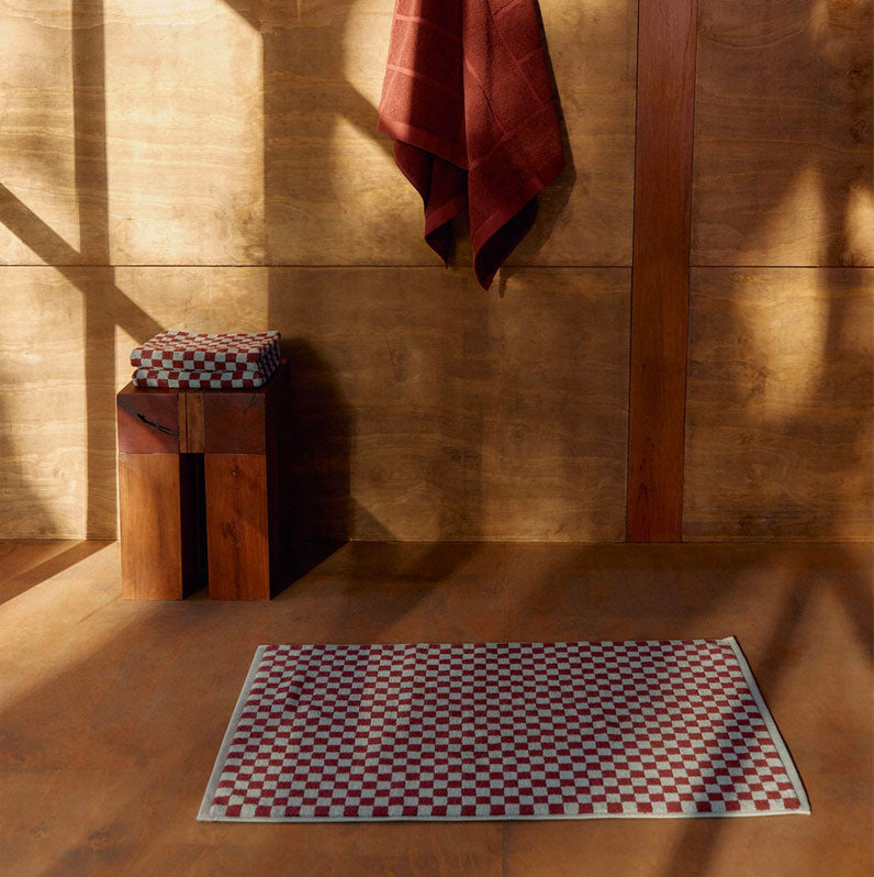100% Organic Cotton bath mat. Luxuriously soft, Beppu features BAINA's signature checkerboard. Fresh and cool, the complimentary colours apply depth and texture to the neutrality of the bathing space.