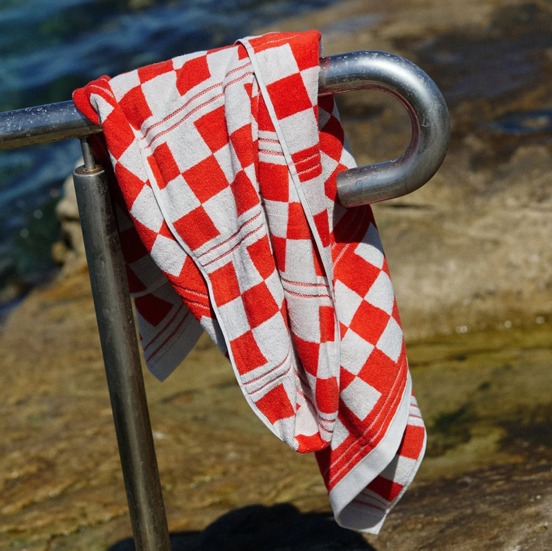 Baina Busby Organic Cotton Pool Towel Cloud & Ranch Red