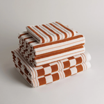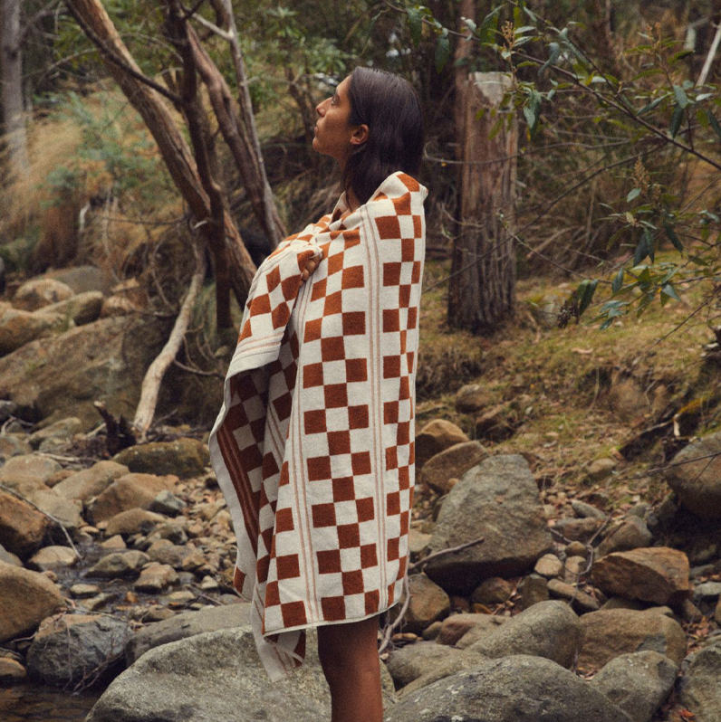 100% Organic Cotton pool or beach towel. A refined take on BAINA’s signature print, the reversible Busby design sees the pairing of bold checkerboard, with a subtle embroidered gridded check.