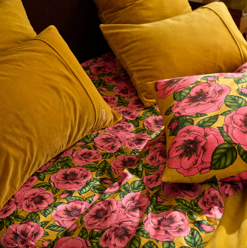 Light, lovely and endlessly versatile! Our Golden Peony Organic Cotton Flat Sheet brings breathable comfort and a splash of personality to your bedding setup. Tuck it tight or drape it loose, your bed, your rules.