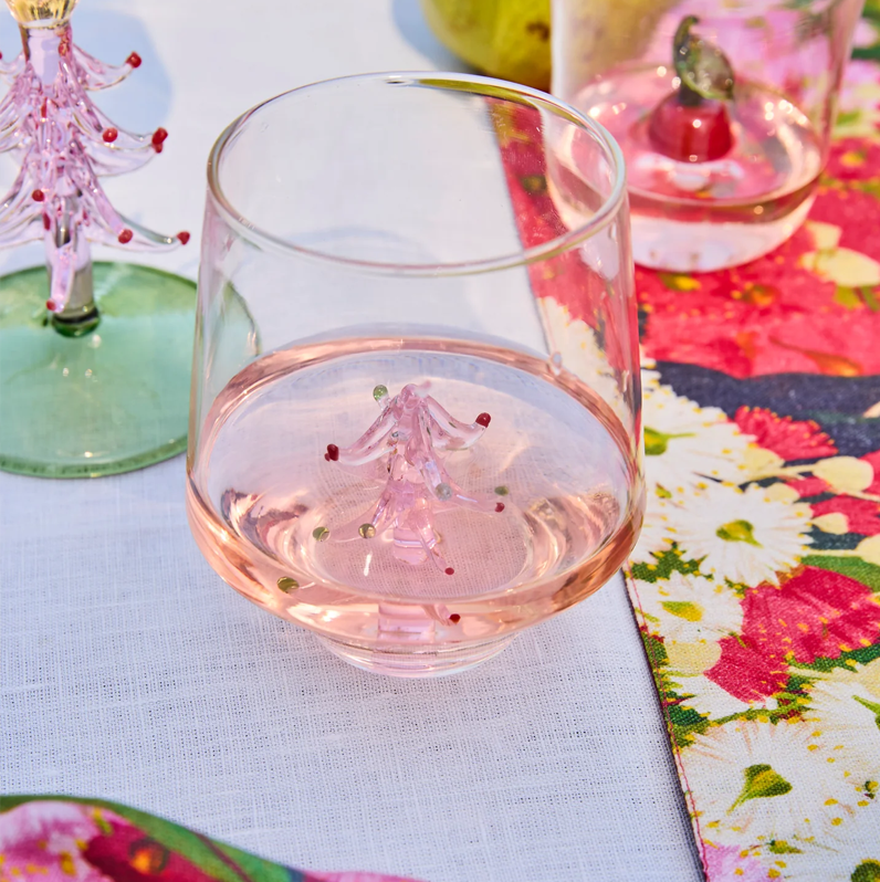 Christmas cheer in every sip! Our Tickled Pink Christmas Tumbler Glass 2P Set is a merry little treat, with clear glass and a pale pink Christmas tree nestled inside. Perfect for festive cocktails, bubbles, or a sparkling spritz, these tumblers bring holiday magic straight to your hand. Lead free 100% handmade blown glassware.